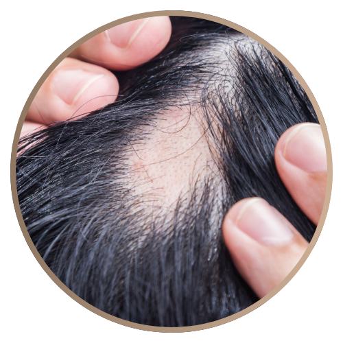 Perda de cabelo por várias causas, incluindo genéticas e autoimunes.